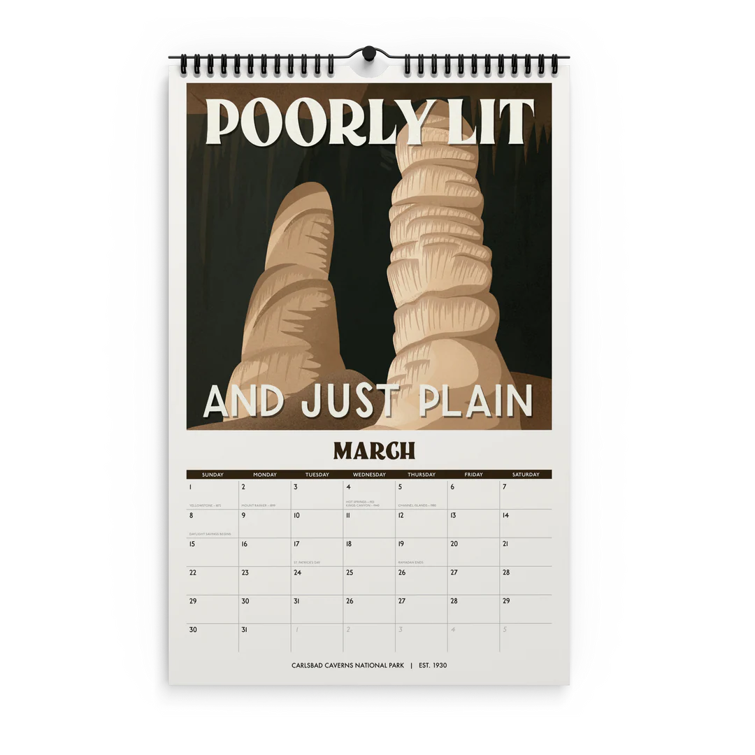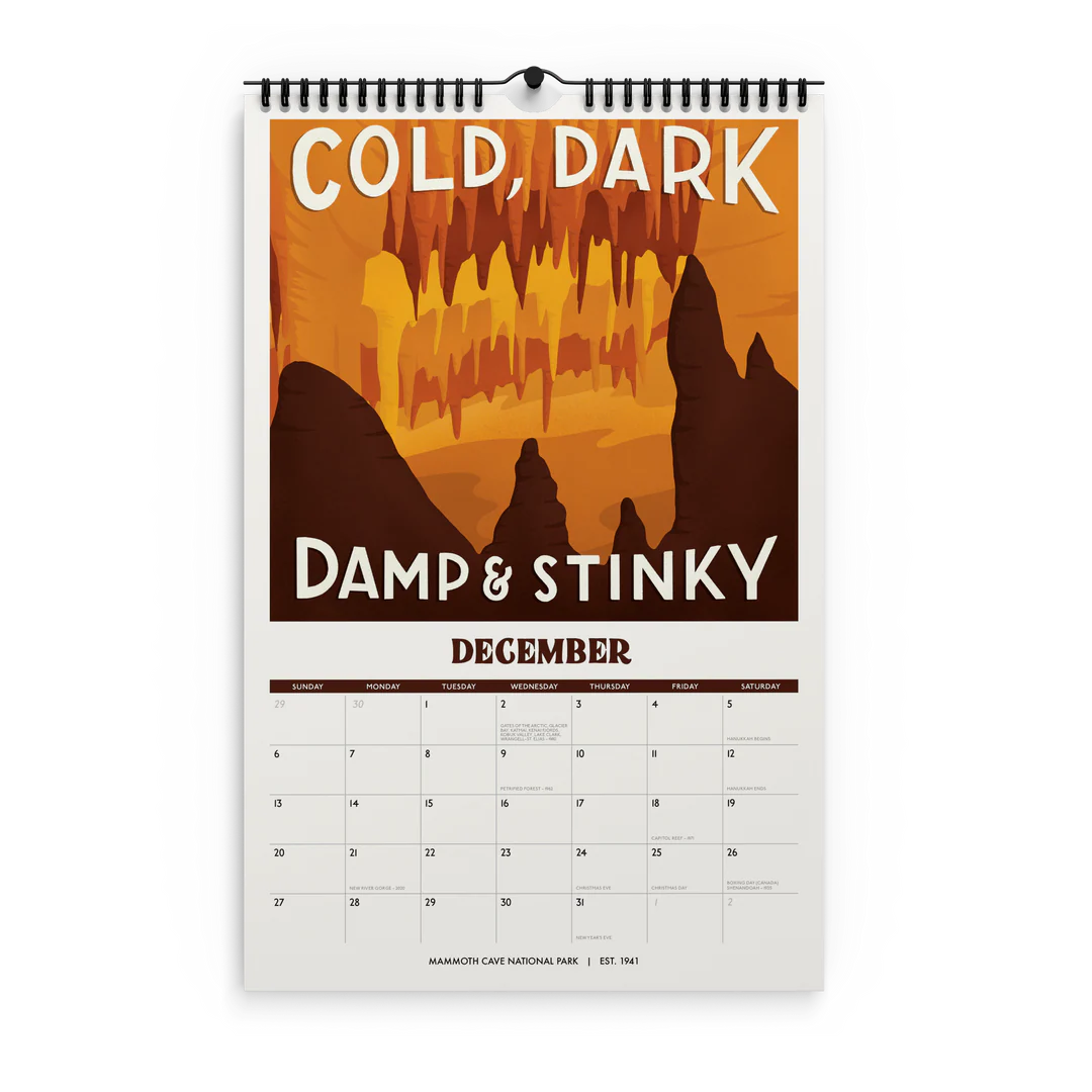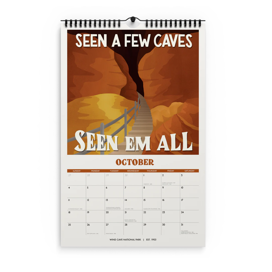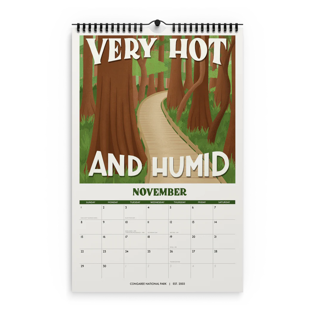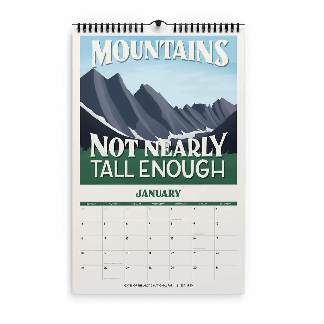 - 11" x 17" spiral (wire-o) bound 12-month wall 2026 national park calendar