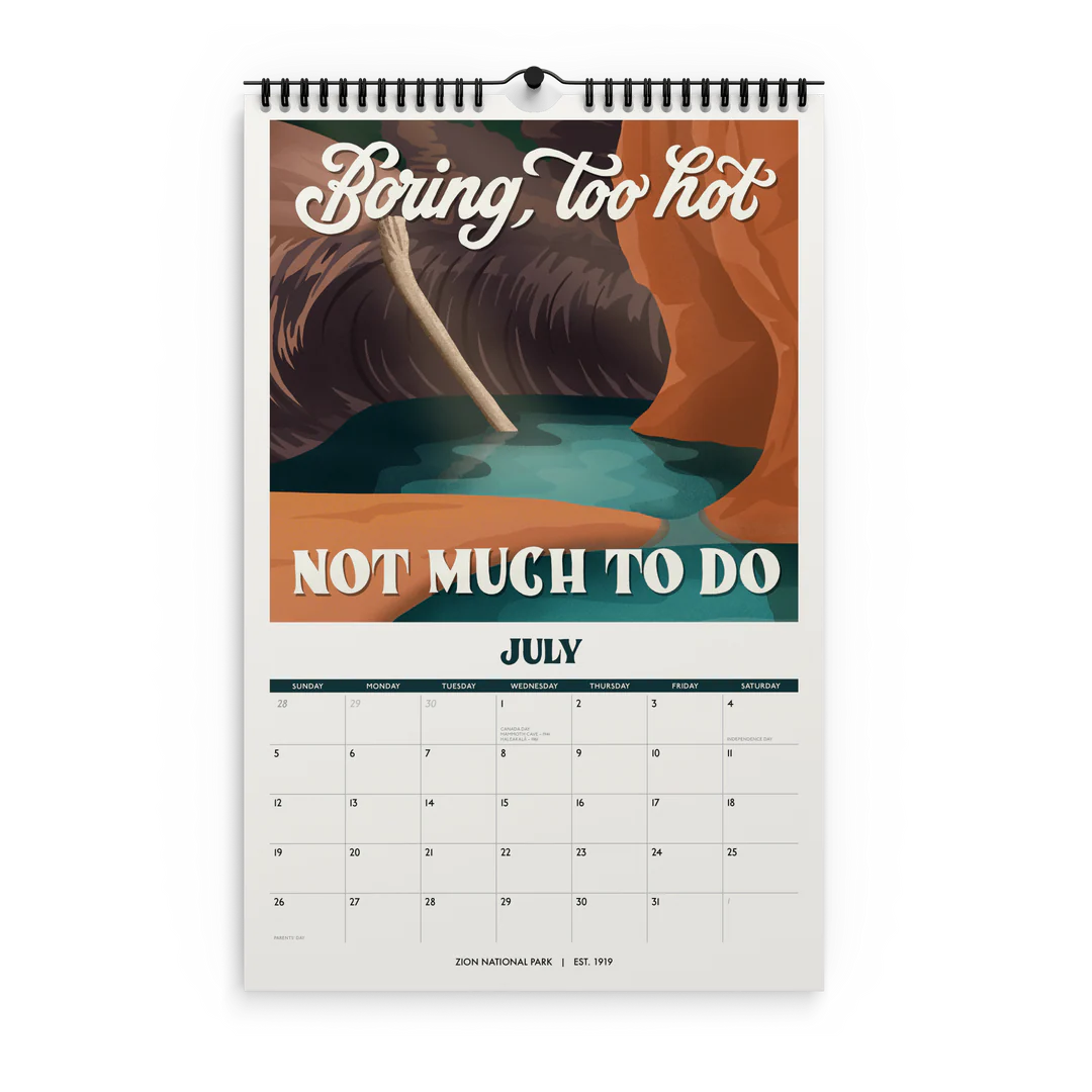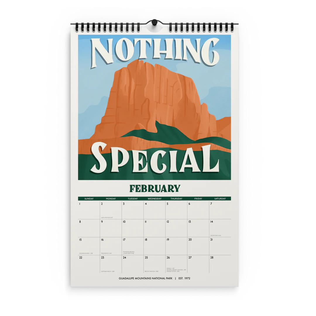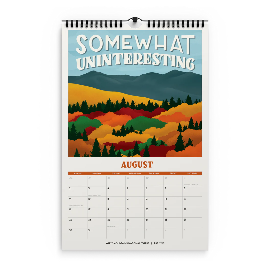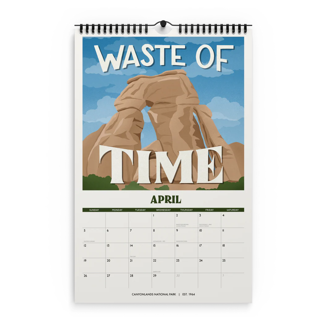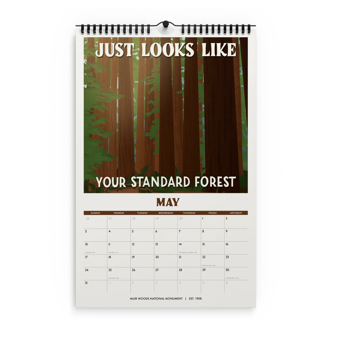 - 11" x 17" spiral (wire-o) bound 12-month wall 2026 national park calendar